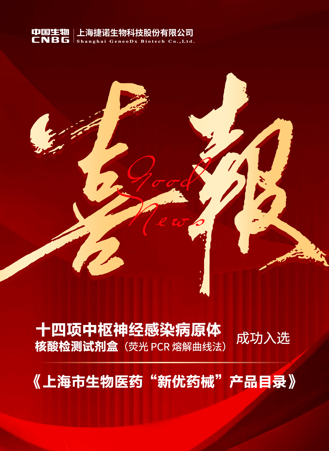 近日,上海捷诺生物科技股份有限公司(以下简称“上海捷诺”)的十四项中枢神经感染病原体核酸检测试剂盒(荧光 PCR 熔解曲线法)成功入选《上海市生物医药“新优药械”产品目录》。